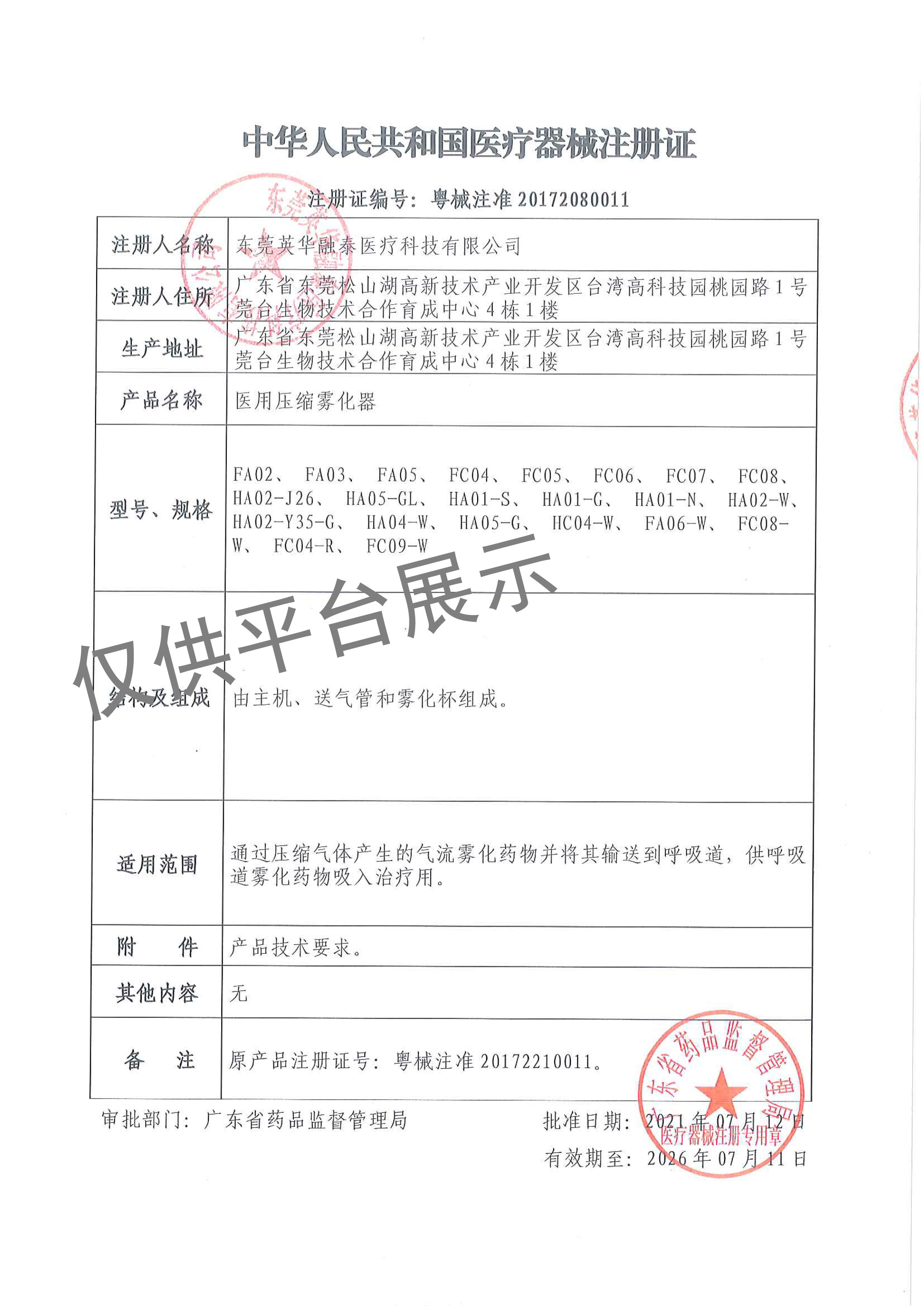 英華融泰家用小型霧化器產(chǎn)品技術(shù)參數(shù)
